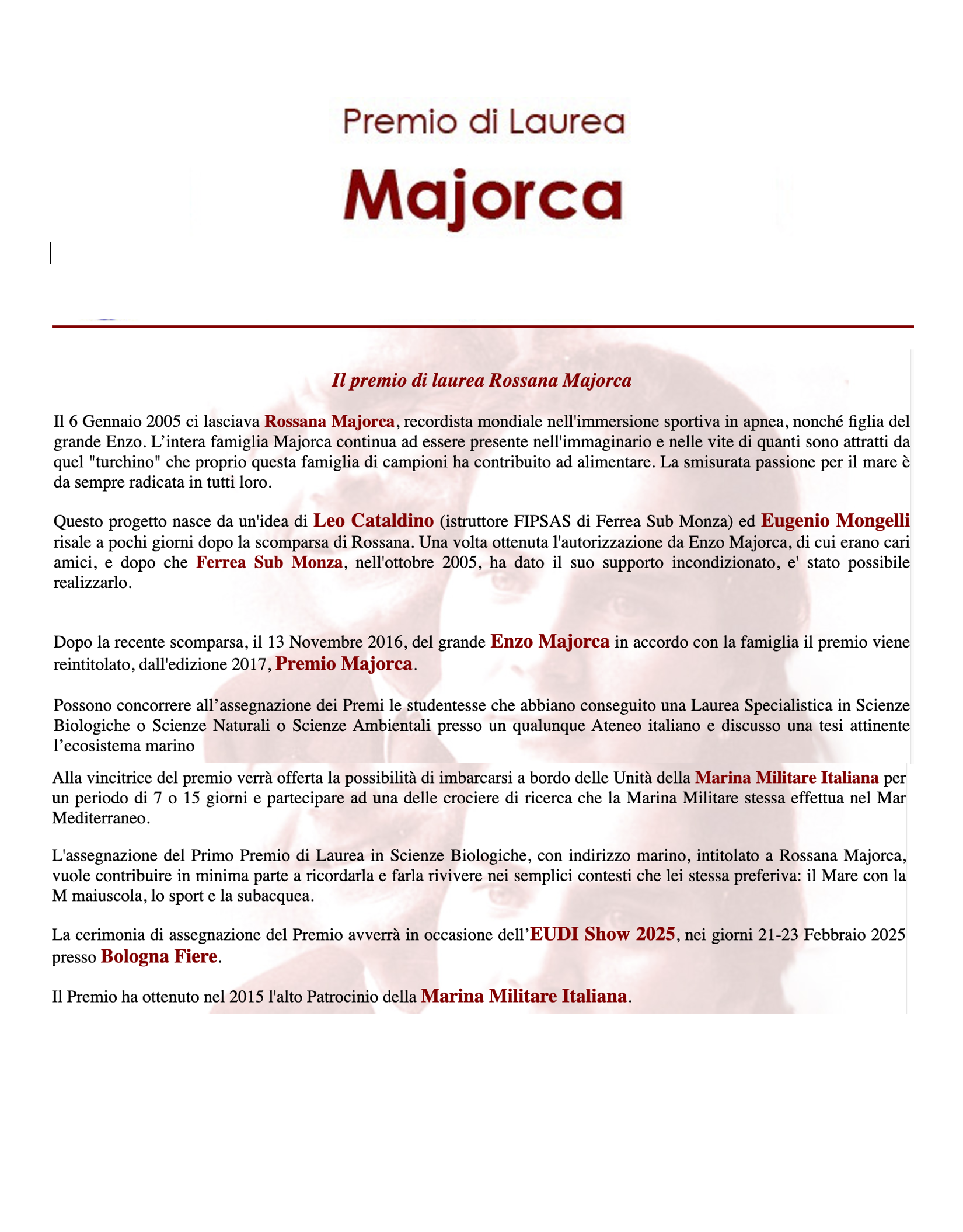 Eudi Show 2025. Torna l’appuntamento con il Premio Maiorca, importante riconoscimento dedicato a giovani laureate che con le loro tesi sul mare si sono contraddistinte meritoriamente.