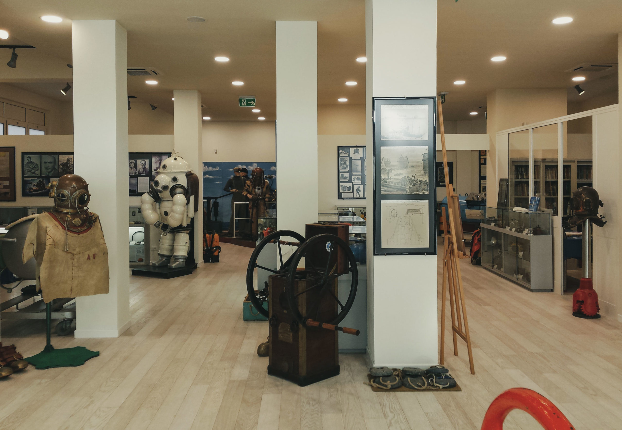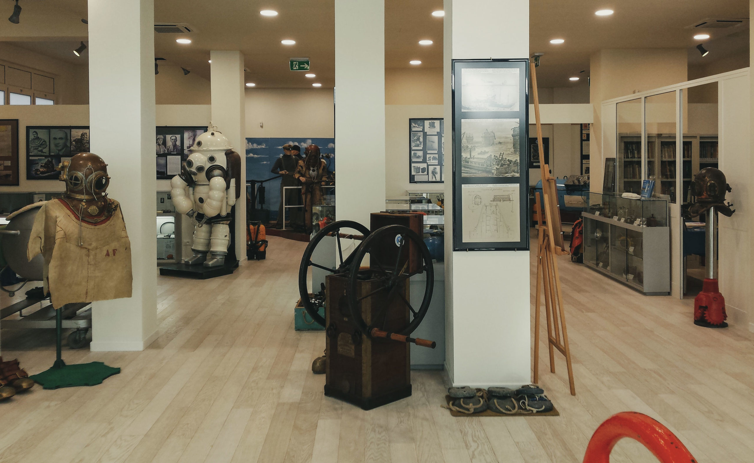 La sala è allestita con due diorama a grandezza naturale uno sull’attività del palombaro, con attrezzature d’epoca, ed uno su quella del moderno sommozzatore commerciale con attrezzature attuali.